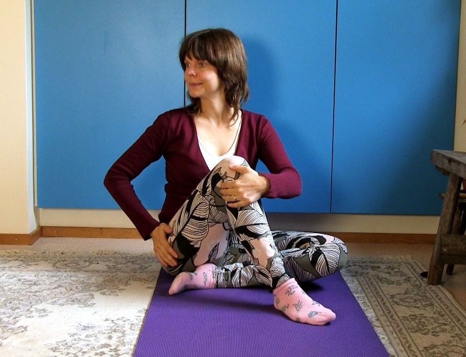 2. tuntoaistimustasi parantamalla: aistit lonkkasi asennon oikealla ja vasemmalla, tunnet puolierot ja huomaat, miten mm. lantiosi liikkeet muuttavat näitä tuntemuksia.